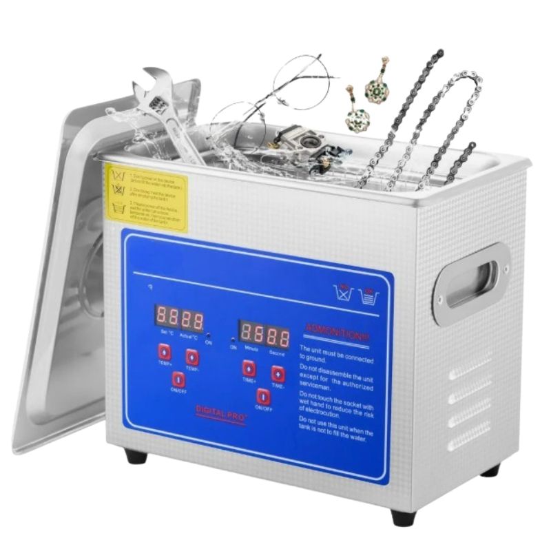 - Panel de control digital: Configuración de tiempo: 0-30 minutos. El limpiador ultrasónico cuenta con un temporizador digital y una pantalla de temperatura para un tiempo de lavado preciso